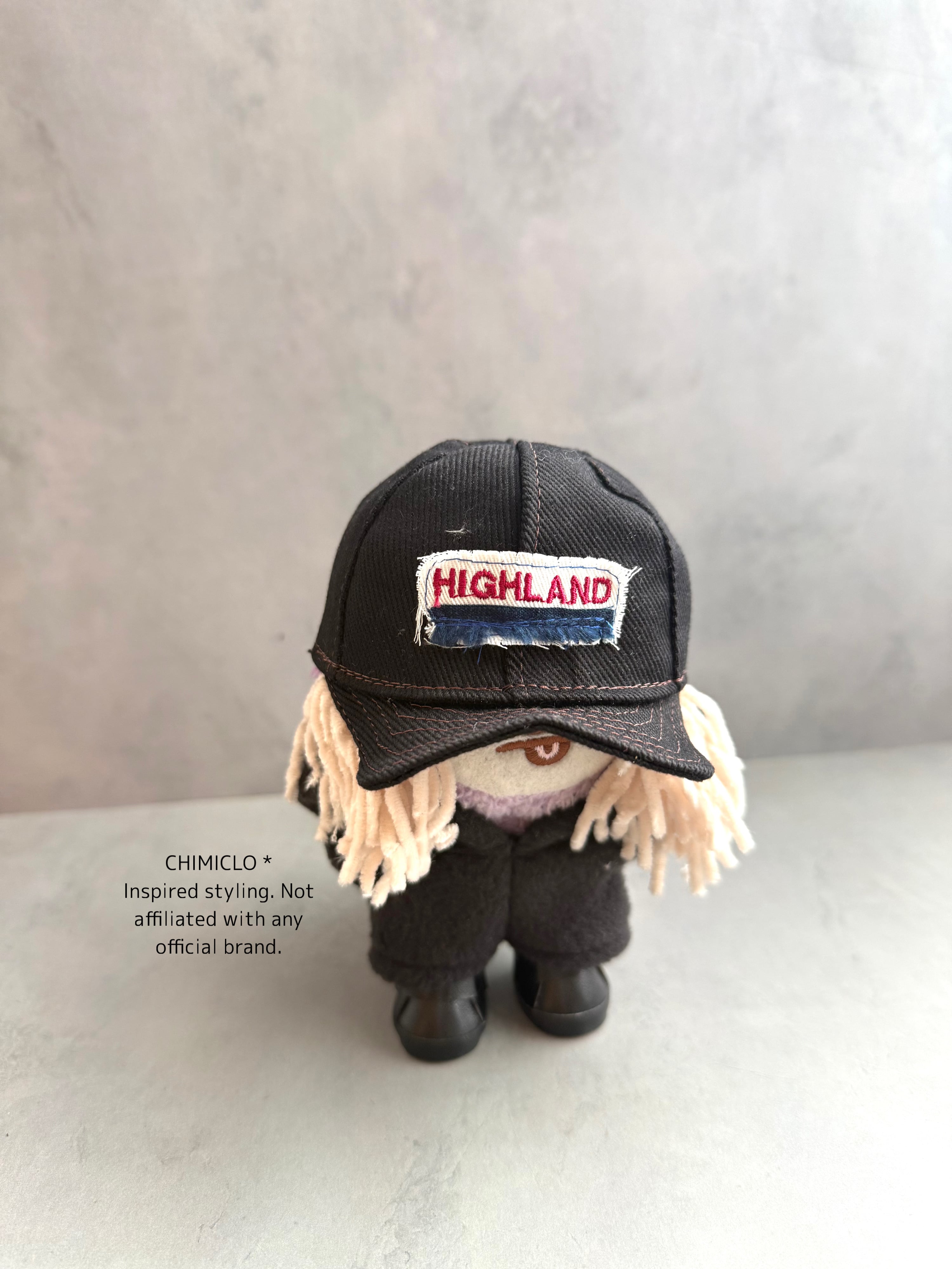 ブラウンステッチと、刺繍ミシンによるロゴ刺繍、ほつれ加工を施したワッペンがポイントのキャップです。
